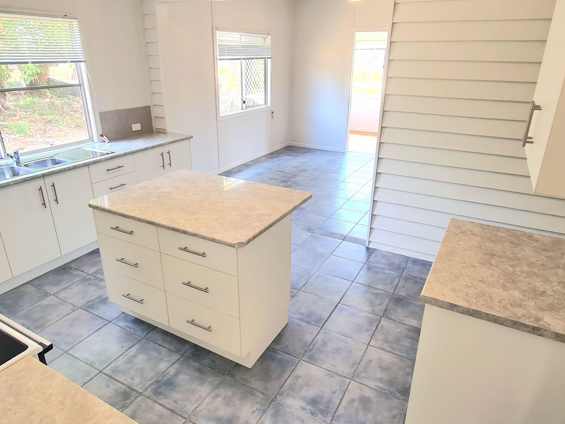 • Tidy, functional kitchen with brand-new oven and fixtures. Fitted with island bench, it has plenty drawer storage, plus pantry space.