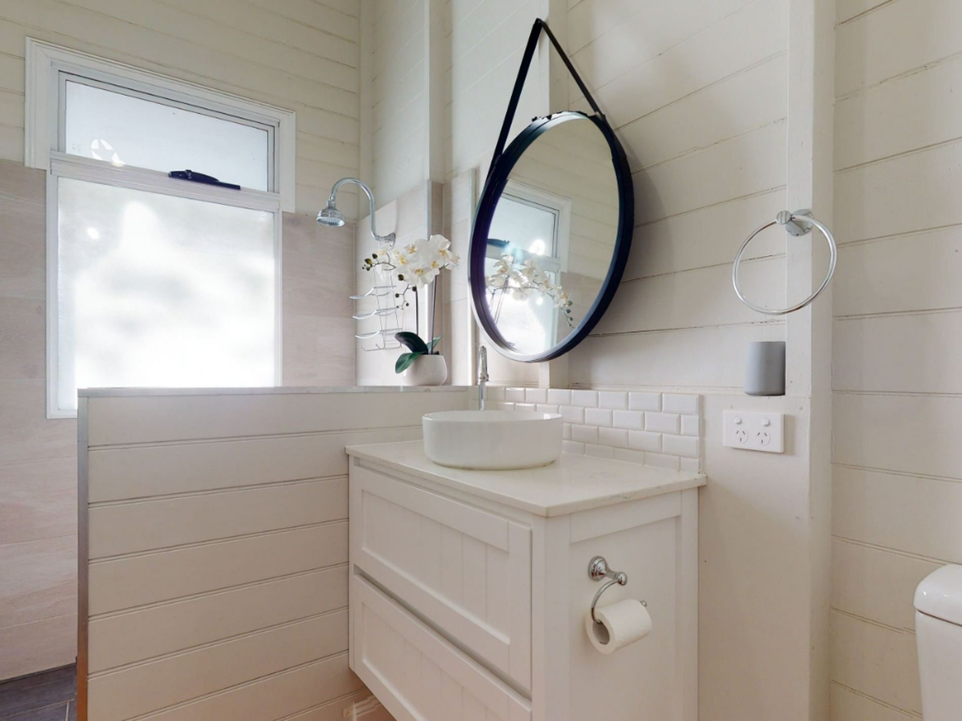 * Updated bathroom featuring a large walk-in shower